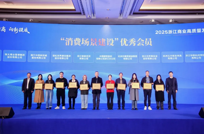 12月30日,由浙江省委社会工作部、浙江省商务厅、浙江工商大学、浙江交通集团指导,浙江省商贸业联合会、浙江省商业总会、浙江工商大学现代商贸研究中心联合主办的“潮擎浙商 向新提质”2025浙江商业高质量发展创新大会在杭州黄龙饭店隆重举行,会上集中表彰了浙江省商业总会、浙江省商贸业联合会“潮擎浙商·2025年度优秀会员”。海宁中国家纺城股份有限公司凭借在沉浸式体验、即时零售等消费场景建设上的创新实践,荣获“潮擎浙商·2025年度‘消费场景建设’优秀会员”称号。