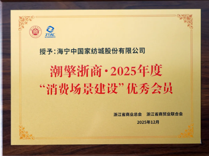 喜报丨海宁中国家纺城股份有限公司荣获潮擎浙商·2025年度“消费场景建设”优秀会员